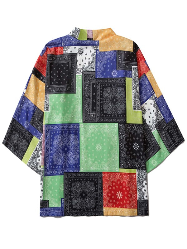 Men Aztec Print Patchwork Kimono - $18.00 SGD