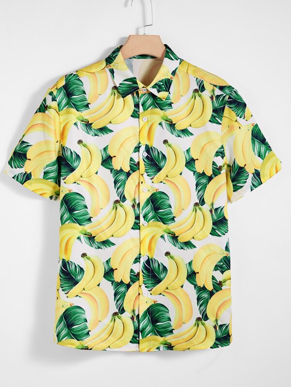 Men Banana and Tropical Print Shirt