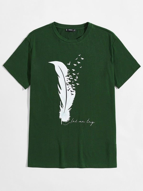 Men Bird and Slogan Graphic Top