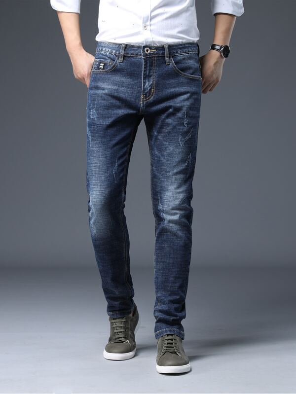 Men Cat Whiskers Solid Washed Jeans - $20.00 SGD