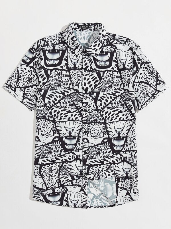 Men Collared Allover Leopard Print Shirt - $31.00 SGD