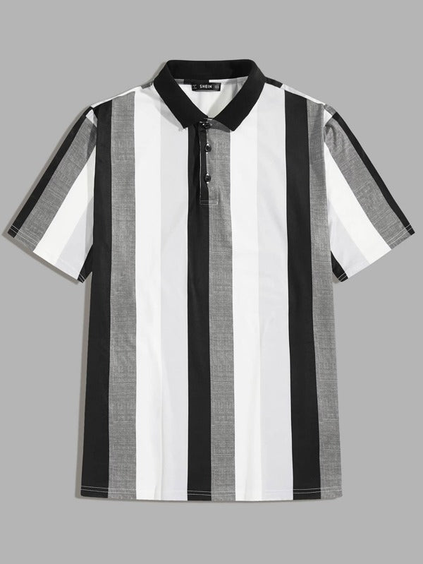 Men Color Block Striped Polo Shirt - $32.00 SGD