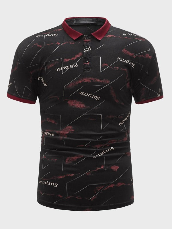 Men Contrast Binding Letter Graphic Polo Shirt - $19.00 SGD