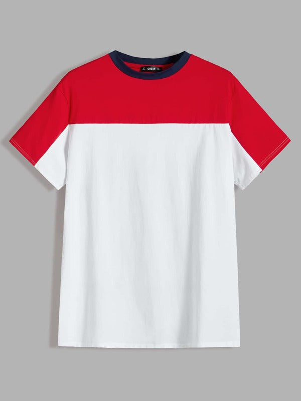 Men Contrast Neck Colorblock Tee - $22.00 SGD