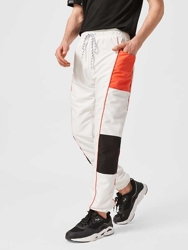 Men Contrast Panel Drawstring Waist Tapered Sweatpants