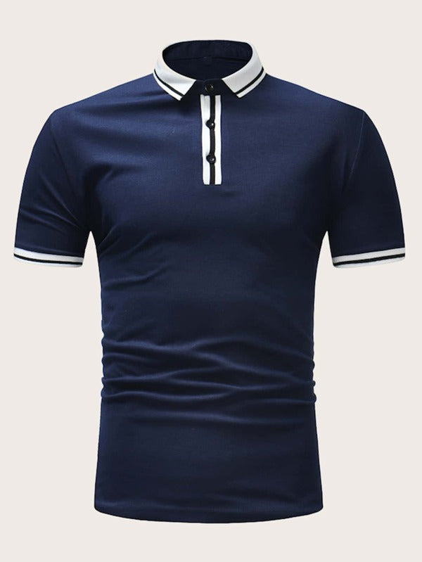 Men Contrast Stripe Trim Polo Shirt