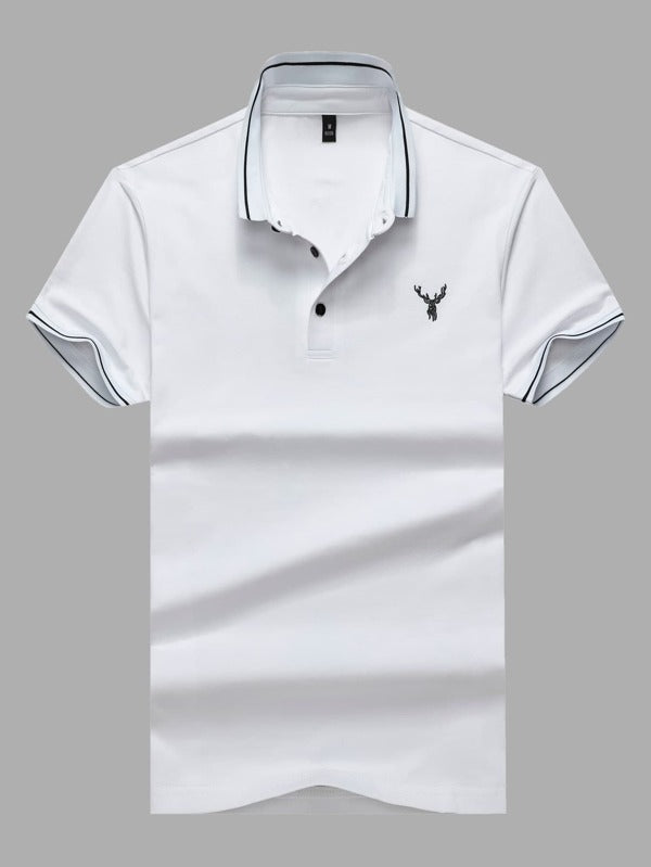 Men Contrast Tape Deer Print Polo Shirt - $17.00 SGD