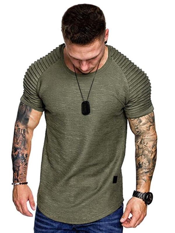 Men Curved Hem Ruched Sleeve Tee - $32.00 SGD