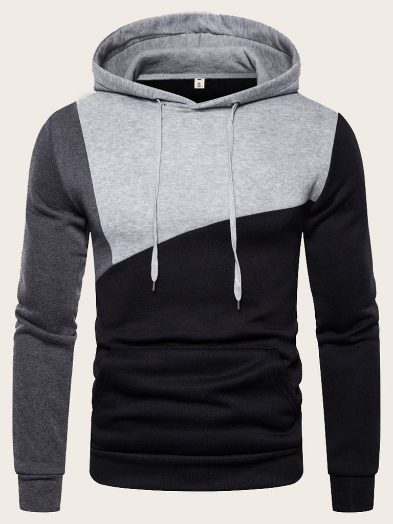 Men Cut And Sew Drawstring Hooded Sweatshirt