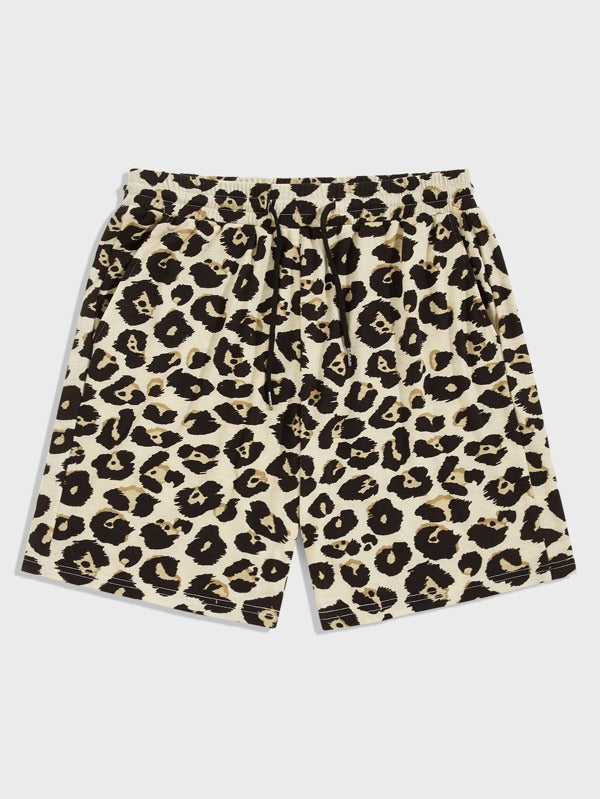 Men Drawstring Waist Leopard Shorts