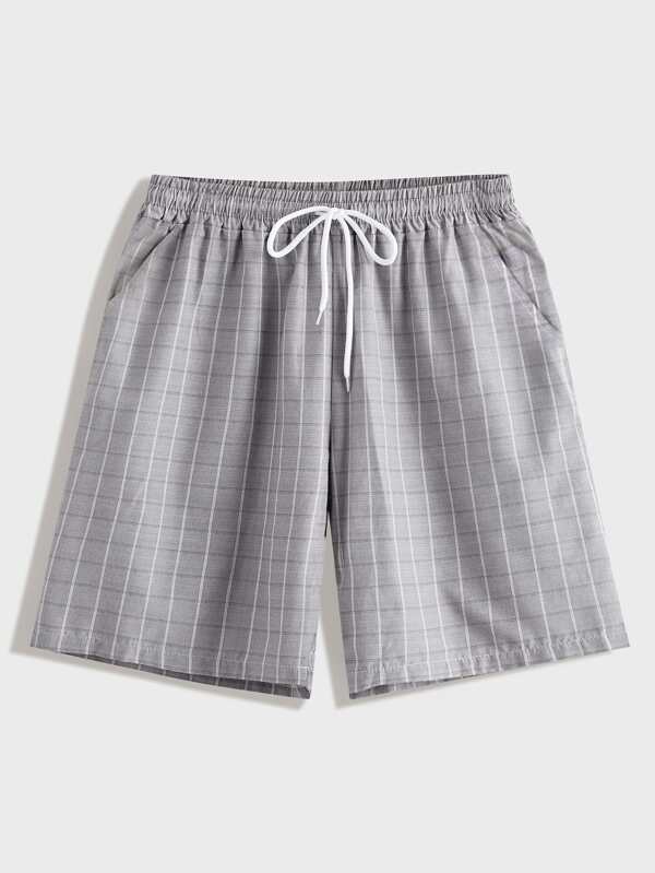 Men Drawstring Waist Plaid Shorts - $35.00 SGD