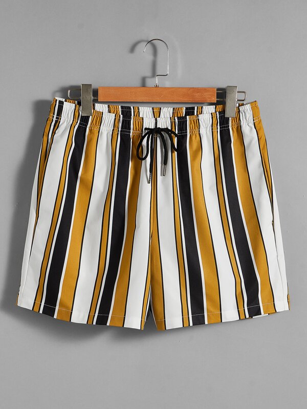 Men Drawstring Waist Pocket Patched Striped Shorts