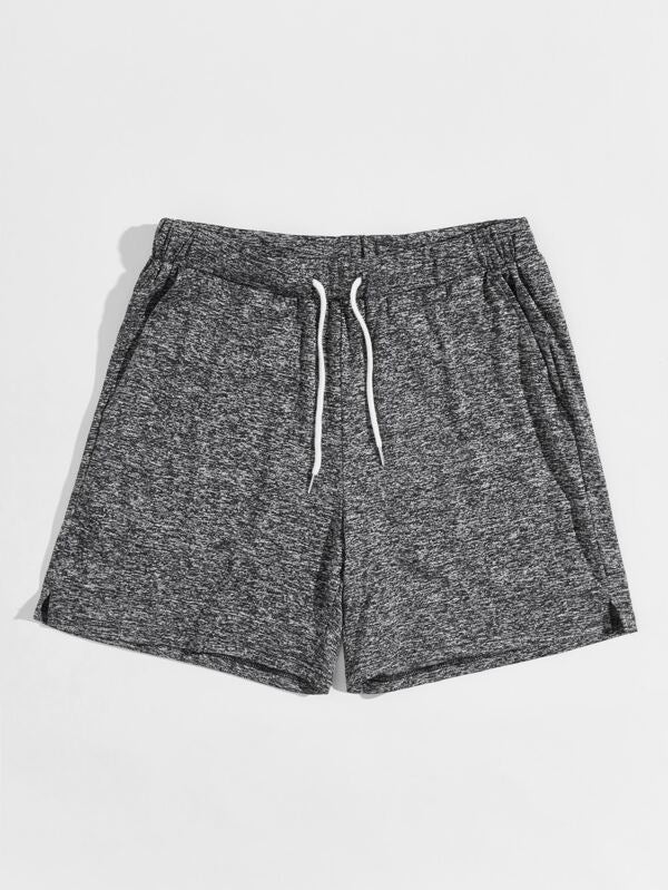 Men Drawstring Waist Slant Pocket Marled Track Shorts