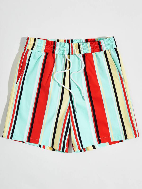 Men Drawstring Waist Striped Shorts