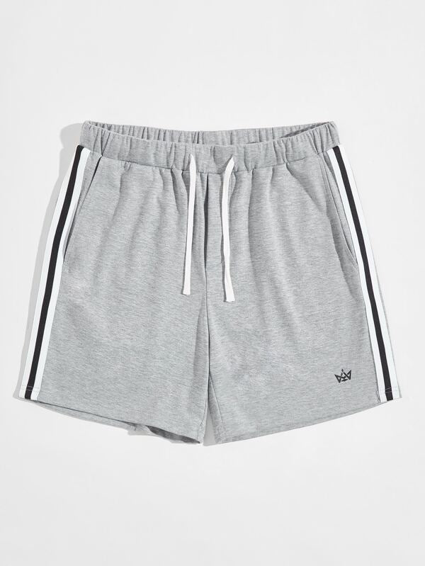 Men Drawstring Waist Striped Tape Side Graphic Shorts