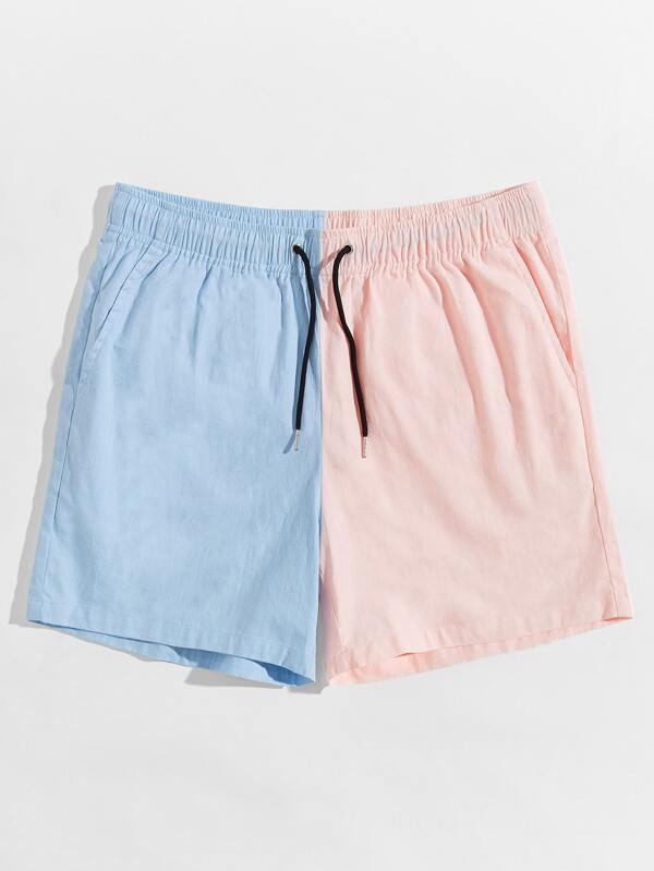 Men Drawstring Waist Two Tone Shorts