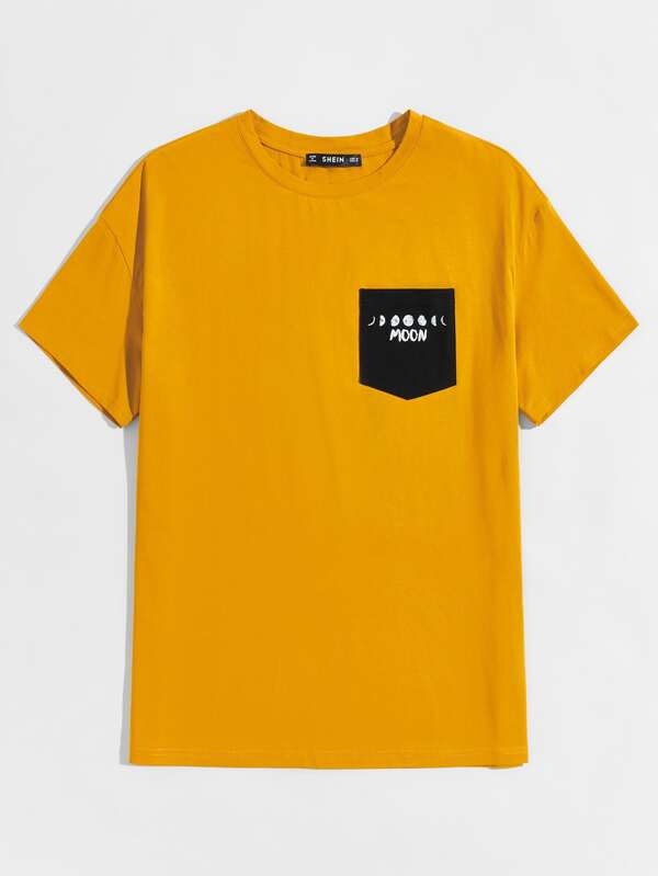 Men Drop Shoulder Letter Graphic Patch Pocket Top