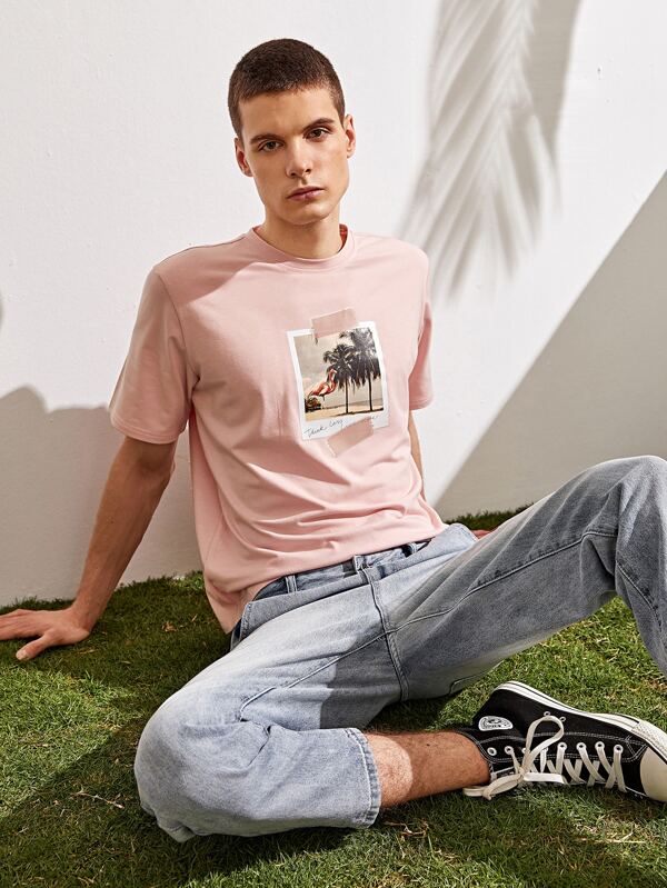 Men Flamingo And Tropical Print Tee - $31.00 SGD