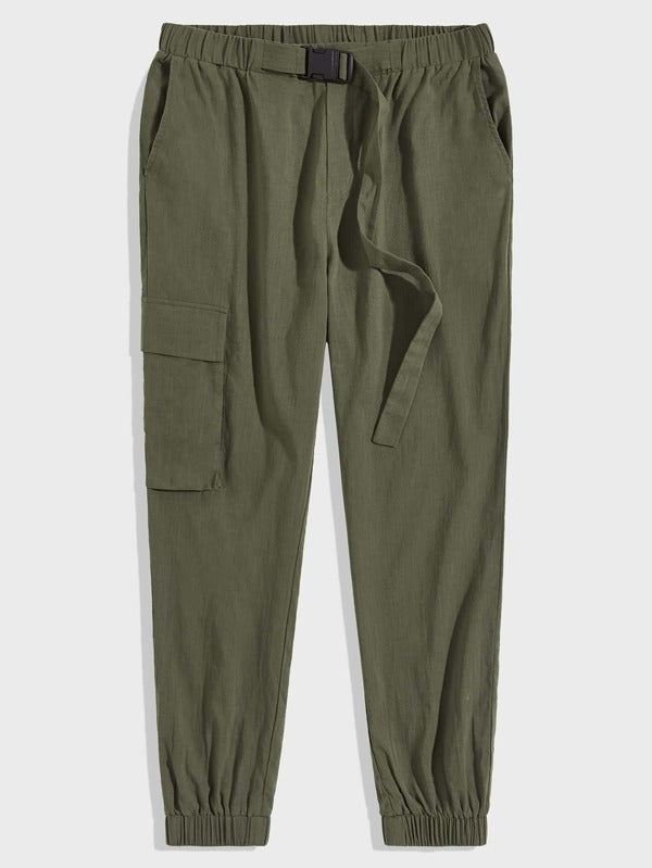 Men Flap Pocket Side Buckle Belted Pants - $25.00 SGD
