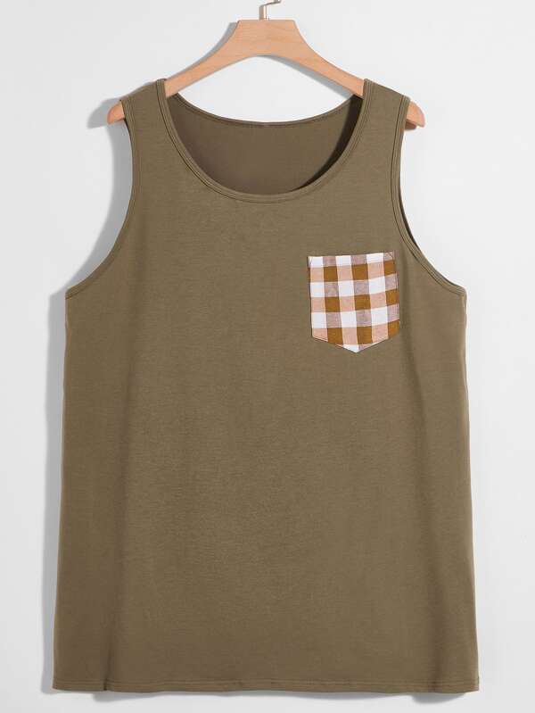 Men Gingham Patched Tank Top