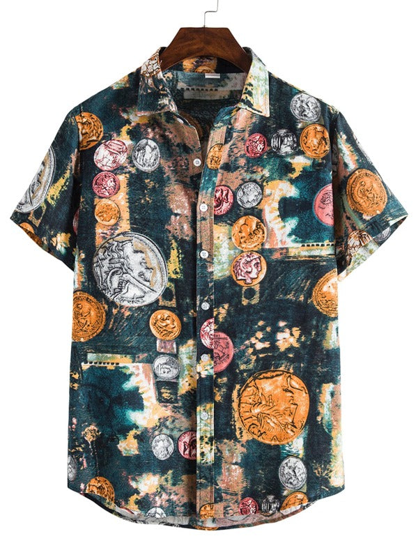Men Graphic Print Button Up Shirts - $19.00 SGD