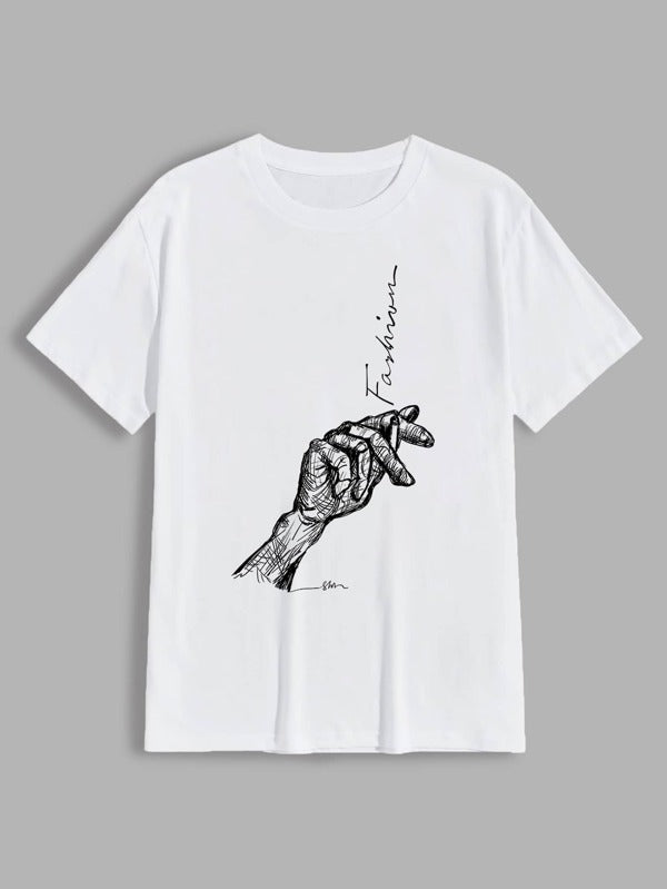 Men Hand Print Short Sleeve Tee - $17.00 SGD