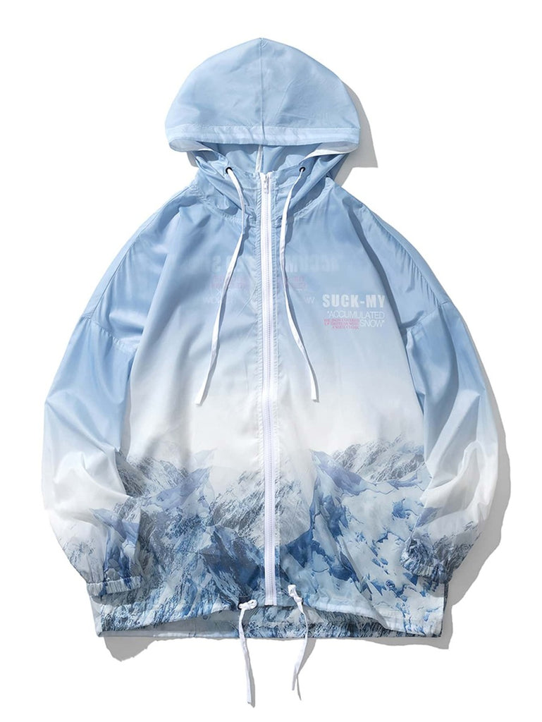 Men Landscape And Slogan Graphic Sunproof Jacket