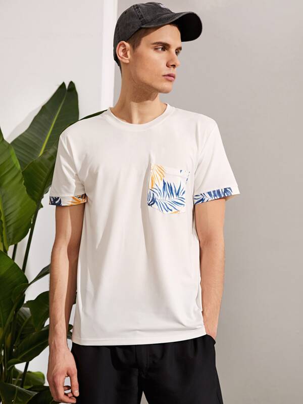 Men Leaf Print Round Neck Tee - $18.00 SGD