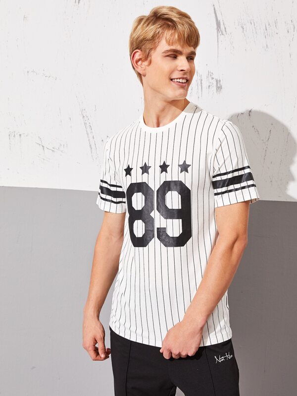 Men Letter and Star Print Striped Top - $18.00 SGD