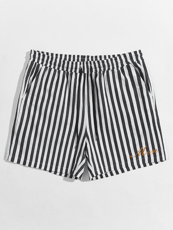 Men Letter Embroidery Drawstring Waist Striped Shorts