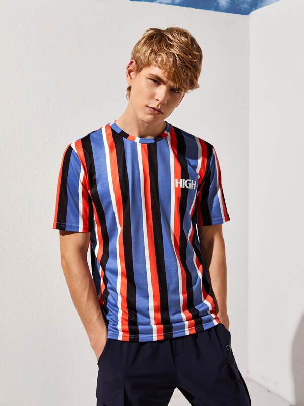 Men Letter Graphic Striped Colorblock Tee - $25.00 SGD