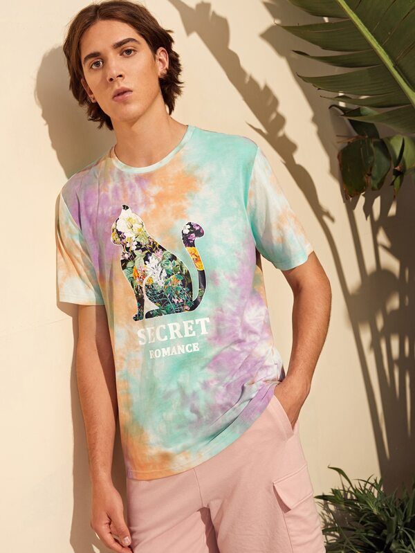 Men Letter Graphic Tie Dye Tee - $20.00 SGD