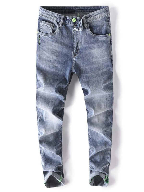 Men Letter Patched Skinny Washed Jeans - $18.00 SGD