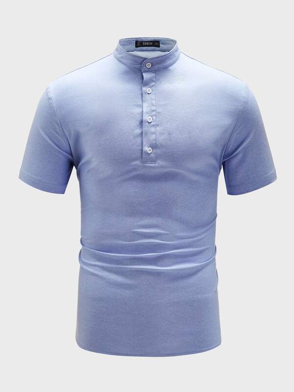 Men Mock Neck Half Placket Shirt - $31.00 SGD