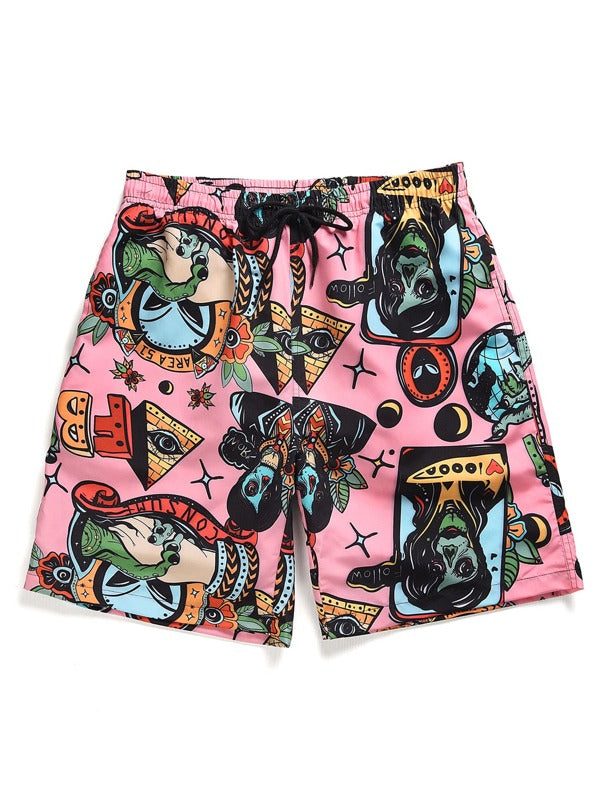 Men Monster And Letter Graphic Shorts