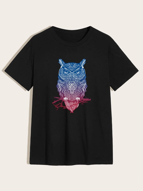 Men Owl Print Short Sleeve Tee - $21.00 SGD