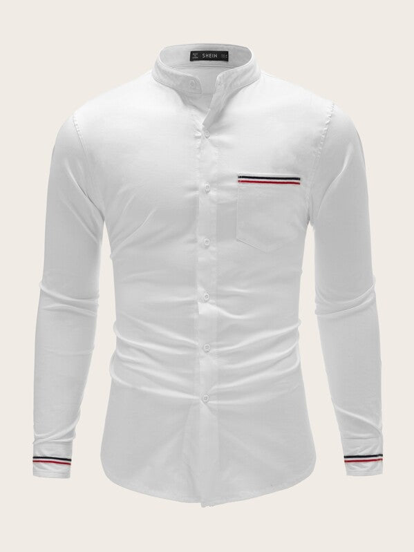 Men Pocket Front Striped Detail Shirt