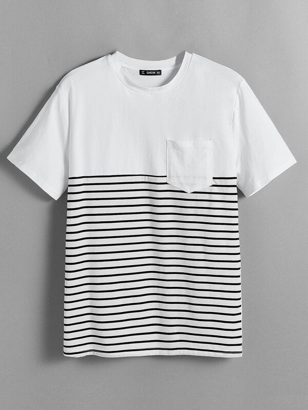 Men Pocket Front Striped Panel Top