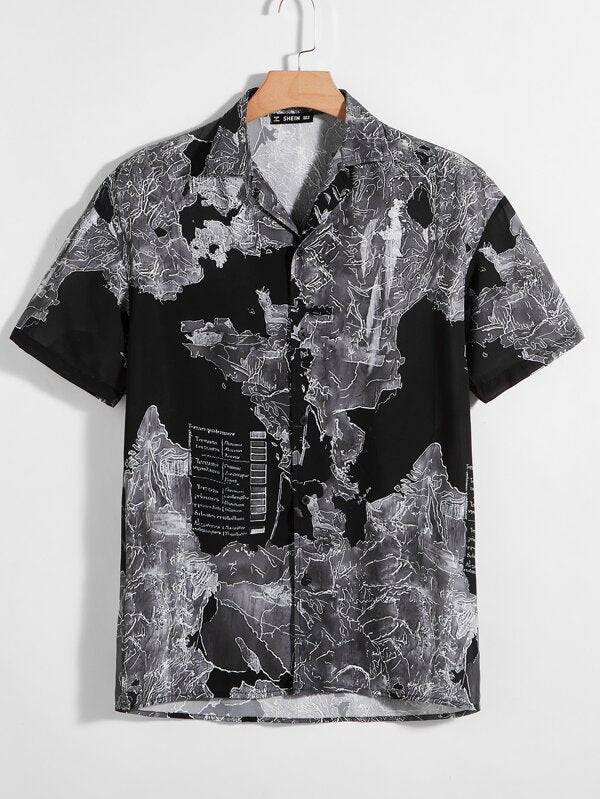 Men Revere Collar Graphic Shirt - $24.00 SGD