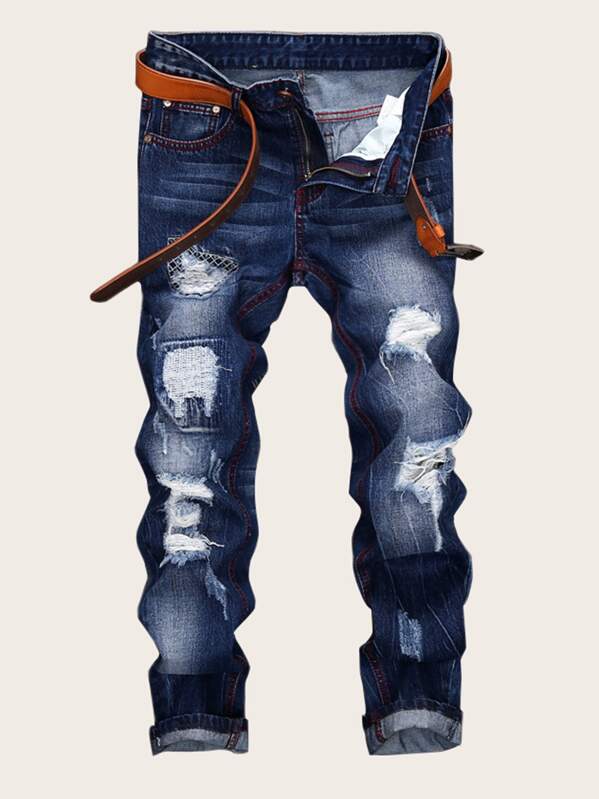 Men Ripped Embroidery Skinny Jeans