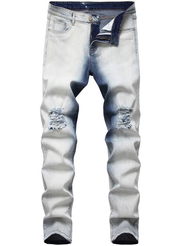Men Ripped Zipper Fly Skinny Jeans - $27.00 SGD