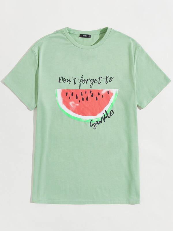 Men Slogan and Watermelon Print Top - $23.00 SGD