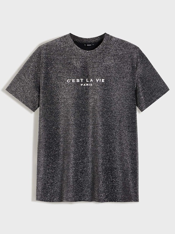 Men Slogan Graphic Glitter Top - $23.00 SGD