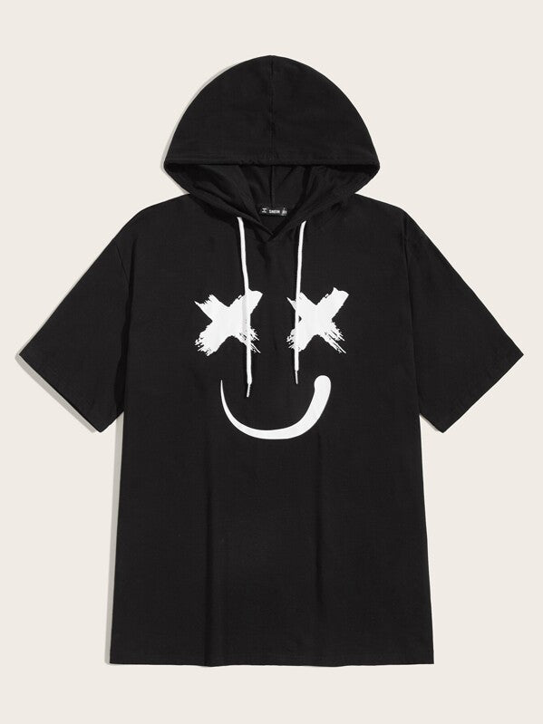 Men Smile Print Short Sleeve Hoodie