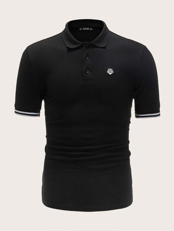 Men Striped Cuff Embroidered Detail Polo Shirt