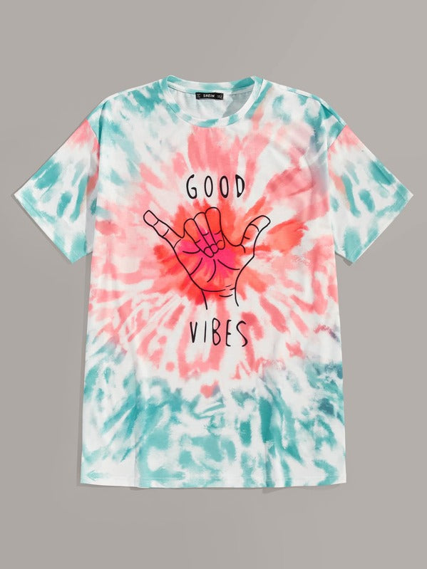 Men Tie Dye Letter & Gesture Graphic Tee - $25.00 SGD