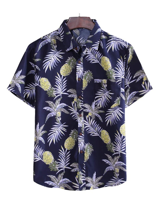 Men Tropical & Pineapple Print Shirt - $25.00 SGD
