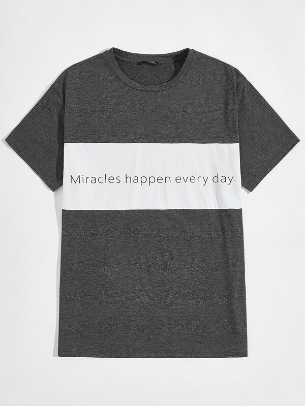 Men Two Tone Slogan Graphic Top - $32.00 SGD