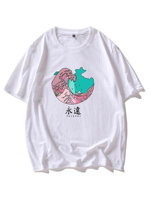 Men Wave & Letter Graphic Tee - $19.00 SGD