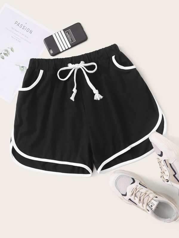 Contrast Binding Drawstring Waist Dolphin Shorts
